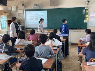 C-NETの先生と学級担任が一緒になって、外国語の授業をしました。俳優になったつもりでどの場面を演じたかを当てるクイズとアルファベットの学習をしました。