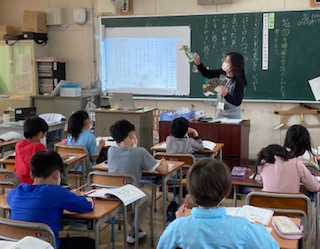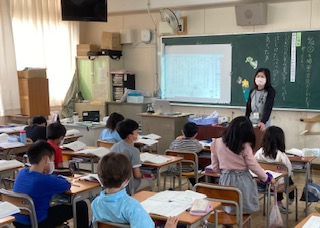 3年生が国語「まちのゆうびんやさん」を学習しています。今日は第三場面の音読の仕方を考えました。子どもたちの想像を促すために、挿絵を活用しました。