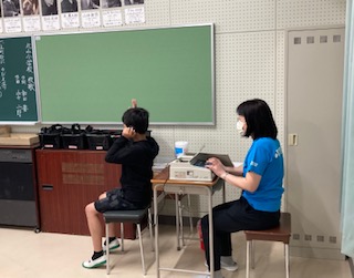 今週は聴力検査をしています。第二音楽室を使って、静かな状態で行いました。