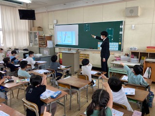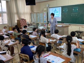 1年生の学習参観は、初めに野菜の断面を写したクイズをしました。その後は、音読、暗唱、ひらがな等をしました。お家の方の姿を見つけると、一段とやる気が出て、がんばりました。