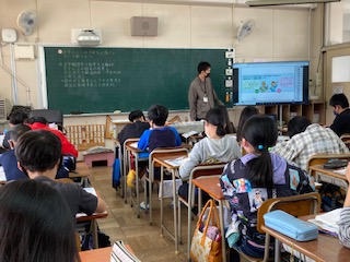 6年生が社会科「選挙のしくみや税金の働きについて」を学習しています。将来、有権者や納税者となる子どもたちは、興味を持って学習していました。