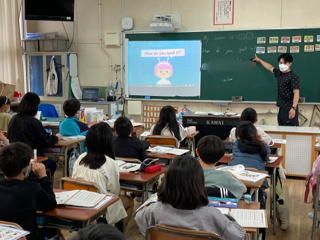 5年生が外国語(英語)の学習をしました。「名前をどう書きますか」とたずねる英語を聞き取り、答える学習をしました。