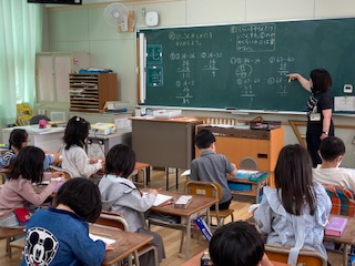 2年生が算数「ひき算の筆算の仕方」を学習しています。今日から繰り下がりのあるひき算を学習し始めました。