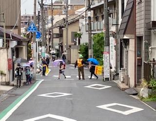 見守り隊の皆さんが、小雨のなか児童の登校を見守っていただきました。ありがとうございます。