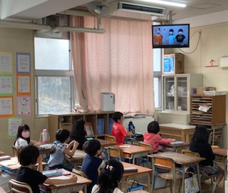 毎週木曜日の朝は、児童集会です。今日は、校内テレビ放送を使って、児童会から気持ちの良いあいさつの仕方についてのお話がありました。その後、図書委員会が考えた図書室の使い方に関するクイズをしました。