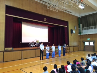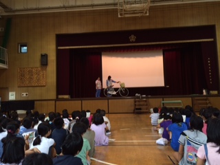 阿倍野警察の方や、区役所の安全パトロールの方々に来ていただき、自転車の乗り方や心構えについてお話を聞いたり、ビデオを見たりしました。