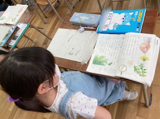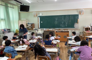 2年生が国語「たんぽぽ」を学習しています。この学習では、たんぽぽの秘密が書かれた文章を読み取ります。今日は、実際のたんぽぽの花を見ました。花びらのように見えているのは、実はひとつひとつの小さな花です。驚きです。