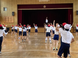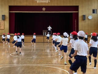 6年生がゲストティーチャーを招いて、運動会で演技するダンスの練習をしました。ゲストティーチャーの指導により、見違えるように楽しく元気に踊ることができました。