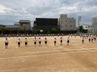 2年生が、運動会の団体演技の練習を運動場でしました。広い運動場で隊形移動の確認をしました。いよいよ来週土曜日の6月11日が運動会です。暑い中ですが、集中して練習できました。