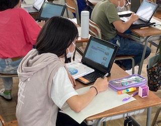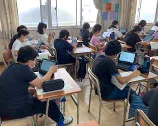 6年生が、国語「防災ポスターを作ろう」を学習しています。タブレット端末で検索して、資料や記事を集めました。