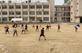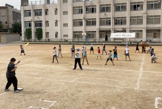 6月11日の運動会をめざして、応援団が初めて運動場で練習しました。入場の仕方、隊形を確認して、声をしっかりと出して練習していました。