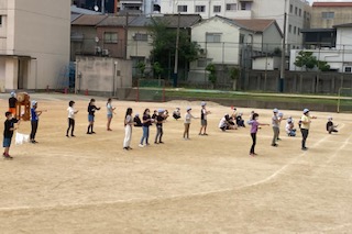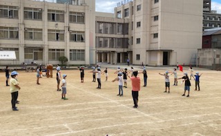 放課後に応援団が応援練習をしました。明日の全体練習で初めて児童全員と応援合戦の練習をします。