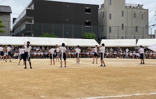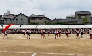 全学年で応援合戦をしました。赤白応援団長を中心に、とても盛り上がりました。今年の優勝は、赤組か白組かどちらになるでしょうか。