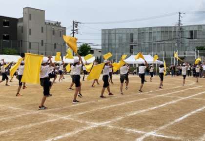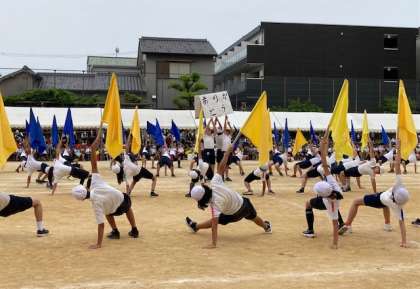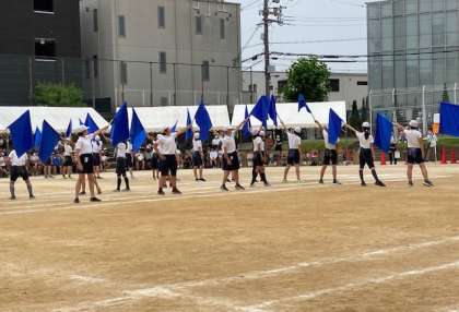 運動会の最後のプログラムは、6年生の団体演技です。小学校最後の運動会、堂々とした立派な演技でした。他学年が6年生になったら、自分たちもフラッグ演技をしたいと思わせる素晴らしい演技でした。