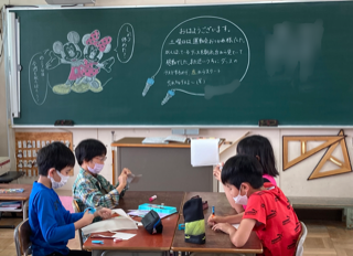 教室に入ると、担任の先生からメッセージがありました。土曜日の運動会はとてもよくがんばっていました。疲れはとれたかなあ。今週はあと4日です。来週からは水泳学習が始まります。熱中症に注意して、体調を整えておきましょう。