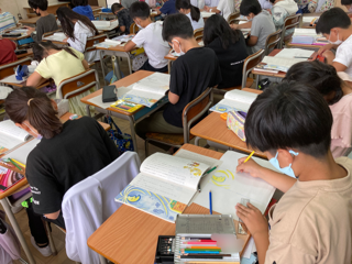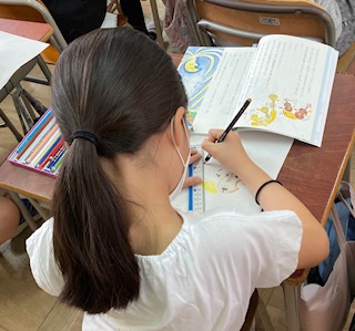 4年生が国語「こわれた千の楽器」を学習しています。自分の気に入った場面を絵に描きました。