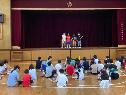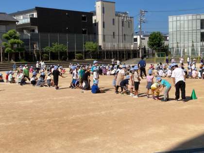 木曜日はたてわり班での児童集会です。体育祭と運動場に分かれて、ビンゴゲームとボール運びゲームをしました。