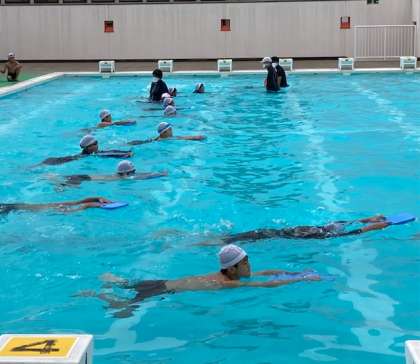 午後から雨がやみましたので、6年生が水泳学習をしました。平泳ぎのキックを練習しました。ビート板を持って練習しましたが、上手に足の裏で水を蹴らないと進みません。