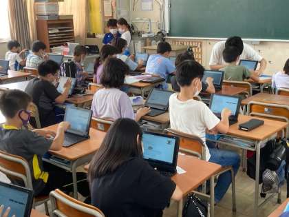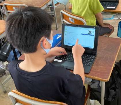 4年生がデジタルドリルに取り組みました。1学期に学習した問題をしました。1学期の学習内容の復習として取り組みました。