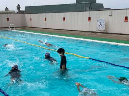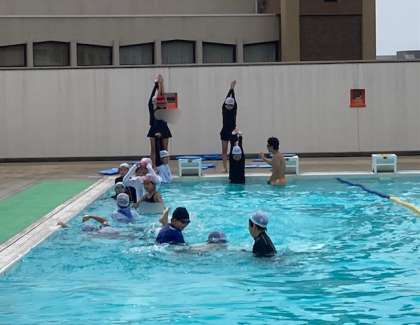 5年生の水泳学習は、3つの泳力別に分かれて学習をしています。全員が25m泳げるようになることが目標です。