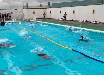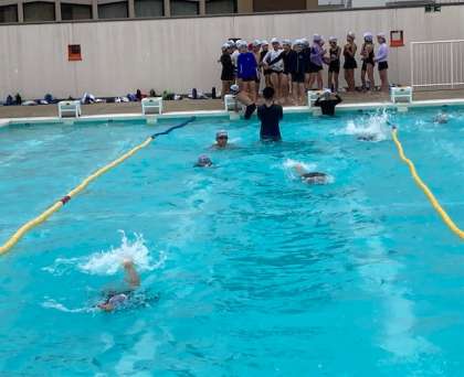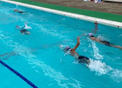 4年生は、ビート板を持ってクロールを練習するコース、もう少しで25m泳げるコース、25mをクロールで泳げるコースの3つに分かれて練習しました。