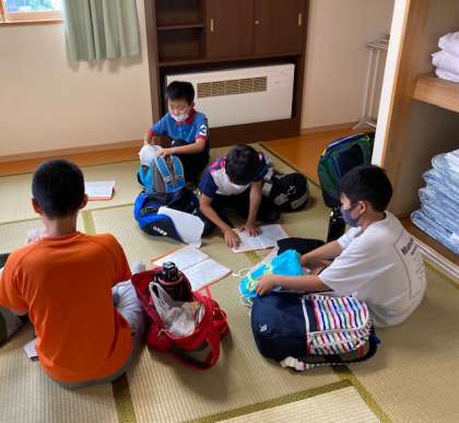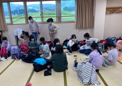 各部屋では、みんなでしおりを見て、確認しながら、活動の準備をしました。