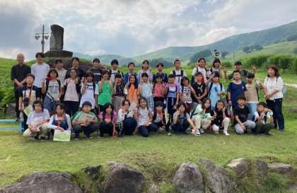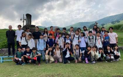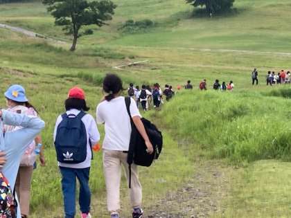 雨が止んだので、オリエンテーリングをしました。出発前に学級ごとに記念撮影をしました。