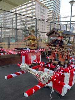 今日は、祭りでかつぐ、みこしの組み立て作業が丸山文化センターでありました。