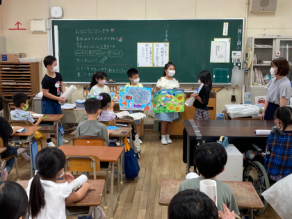 図画をみんなに披露したり、自由研究を発表したりしました。教室には夏休みの作品が飾られます。とても楽しみです。