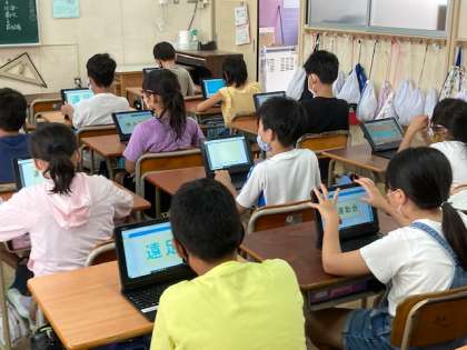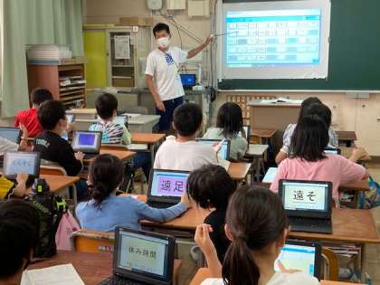4年生が、国語「学校についてしょうかいすることを考えよう」を学習しています。新1年生に学校生活の中で、楽しい時間や行事など紹介することを考えました。各自の意見を発表ノートに入力し、みんなの意見を確認しました。