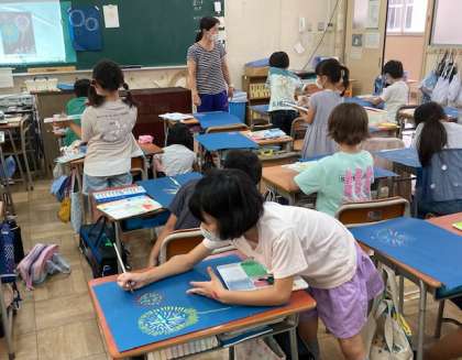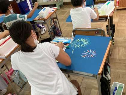 3年生が図画工作で花火を描きました。夏の思い出の一つである打ち上げ花火を描きました。カラフルできれいな花火が打ち上がりました。
