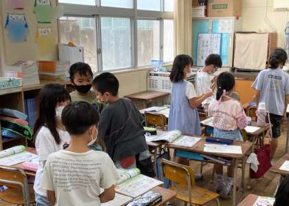 2年生が生活科で学習したザリガニについて、まとめました。住んでいるところ、食べ物、オスとメスの違い、どのように大きくなるのかなど、調べてまとめました。わからない時は、ペアで話し合いました。