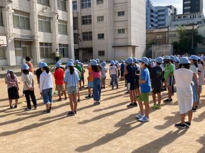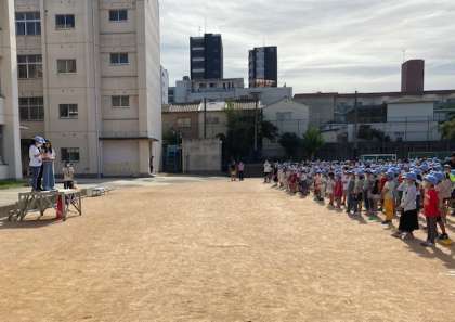 運動場で児童朝会をしました。児童会から、今週からあいさつ週間が始まることとプルタブ回収の中間報告がありました。校長先生からは、感染対策の徹底、マスク着用の確認、寒暖の差によって体調を崩さないようにすること、漢字クイズについてのお話がありました。今週も元気に学校生活がスタートしました。