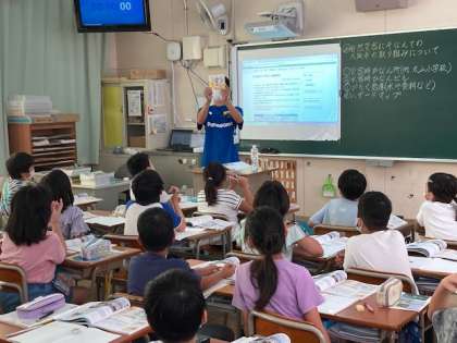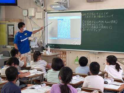 4年生が、自然災害に備えた取組を学習しました。丸山小学校が災害時の避難場所であり、その避難場所には備蓄倉庫があることを学習しました。丸山小学校の備蓄倉庫にある水、アルファ化米、ビスケットを見せてもらいました。ハザードマップについても学習しました。