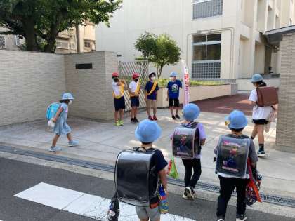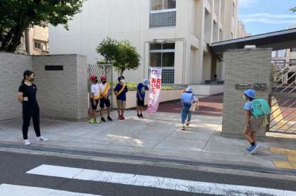 今週はあいさつ週間です。児童会運営委員が元気にあいさつをすると、登校して来た子どもたちも、元気に「おはようございます」と、返しています。気持ちの良い朝のはじまりです。
