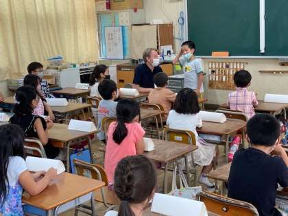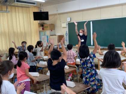 2年生が英語の講師の方を招いて、英語レッスンをしました。これは、阿倍野区のグローバル人材育成支援事業として行われました。ネイティブスピーカーと楽しく英語に触れることができました。大きな声で発音し、盛り上がったレッスンでした。