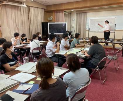 5年生の算数研究授業終了後、教職員で授業の振り返りをしました。その後、教育センター教育指導員の先生から算数授業に関する指導・助言をいただきました。