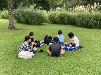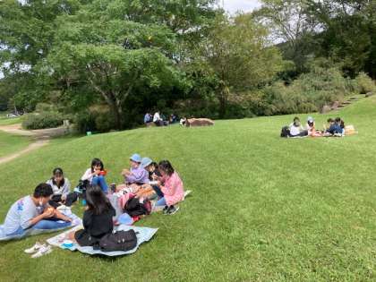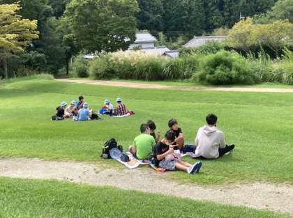 石舞台の近くの広場でお弁当を食べました。トンボがたくさん飛んでいて、秋を感じながらお弁当を食べました。