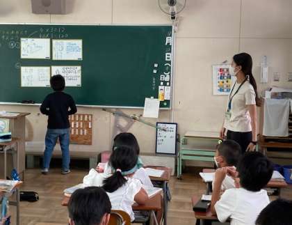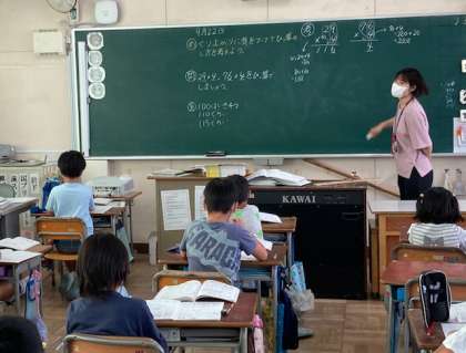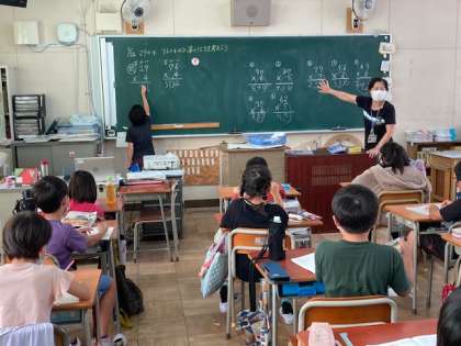 3年生の算数で十の位にくり上がりのあるかけ算の筆算の仕方を学習しました。くり上がりに気をつけ、練習問題をして定着を図ります。