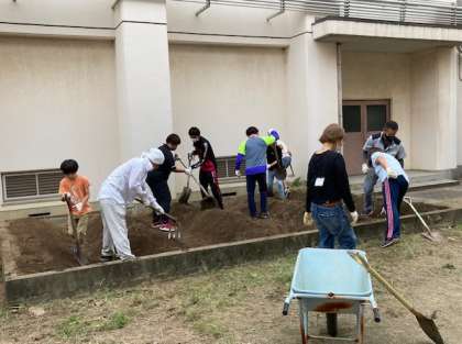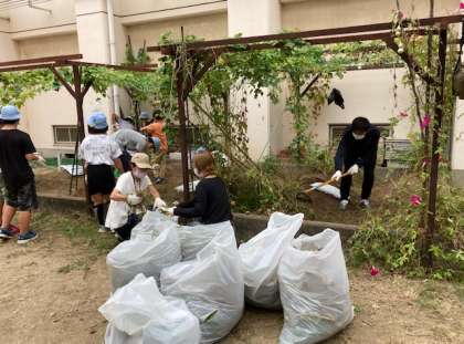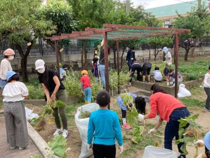 PTAの学習園サポート企画から、学習園の種まき準備ボランティアを募集したところ、たくさんの保護者、地域の方、児童が参加してくれました。なにわの伝統野菜である天王寺かぶら、田辺大根の種まきをするにあたり、雑草を取り除き、うねを作るなどの下準備作業をしていただきました。大変ありがとうございました。