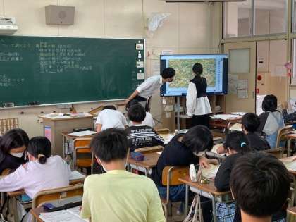 6年生は、社会科「戦国の世から天下統一へ」を学習しています。今日は長篠の戦いでの武田軍の騎馬隊と織田軍の鉄砲隊の戦いについて、それ教科書の挿絵を見て考えました。