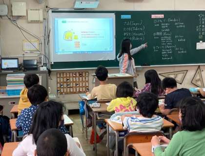 4年生が外国語活動(英語)を学習しました。映像を見て、世界の子どもたちのカバンの中身について気づいたことを書きました。