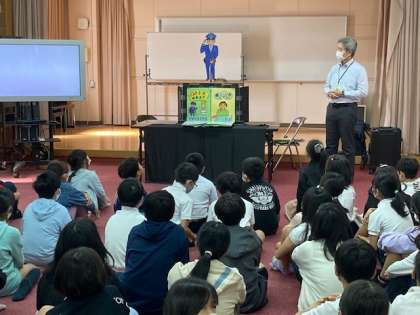 少年サポートセンターから講師の方に来ていただき、非行防止教室をしました。万引きなどの犯罪について、ペープサートを使ってわかりやすく説明していただきました。