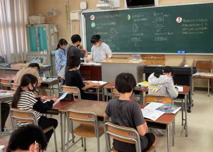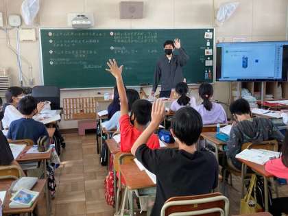 6年生が学級を2分割して算数の学習をしました。およその容積の求め方を考えました。学んだことは、算数ワークで確認をしました。