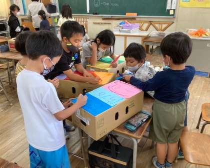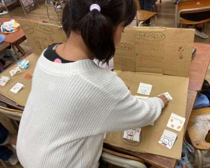 2年生が生活科「うごくおもちゃをつくろう」を学習しています。ゴム、風、坂道、磁石などで動くおもちゃを作っています。作ったおもちゃで1年生を招待しておもちゃ祭を19日にします。今日は最後の仕上げとリハーサルをしました。