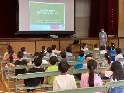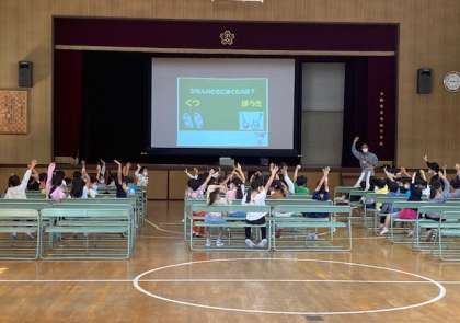 1年生は、講堂で区役所の方から防災教室をしていただきました。DVDを視聴して、防災に関するクイズをしました。