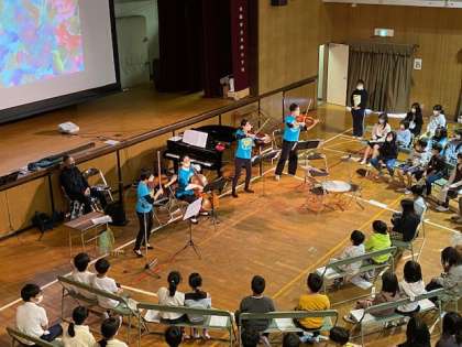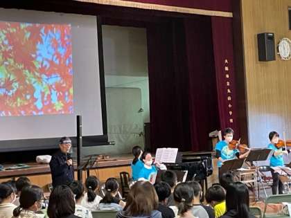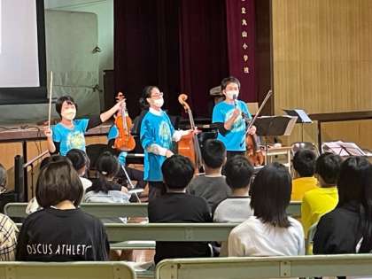 本物の弦楽合奏を間近に体感することができ、子どもたちは、興味深く見入っていました。