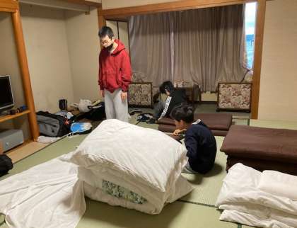 さわやかな秋晴れです。全員元気に起床して、シーツや布団などをたたみました。朝は少し肌寒いです。