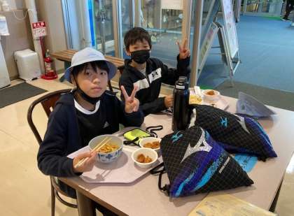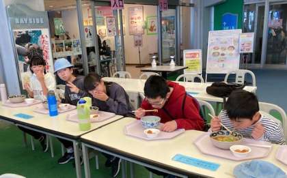 鳥羽水族館13時出発までに、各班で昼食をとります。伊勢うどん、カレーライス、チャーハン、ラーメンなどを選んで食べています。