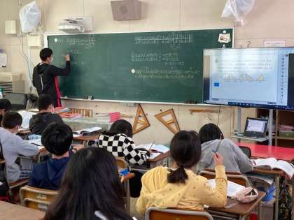 修学旅行疲れが心配されましたが、元気に登校した6年生。学習の秋にふさわしく、集中して算数「比例と反比例」の学習をしています。